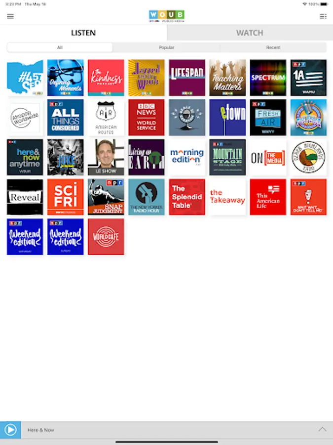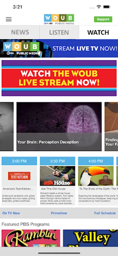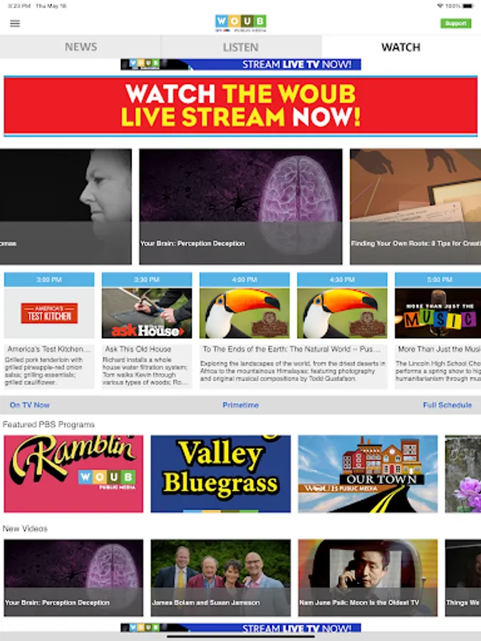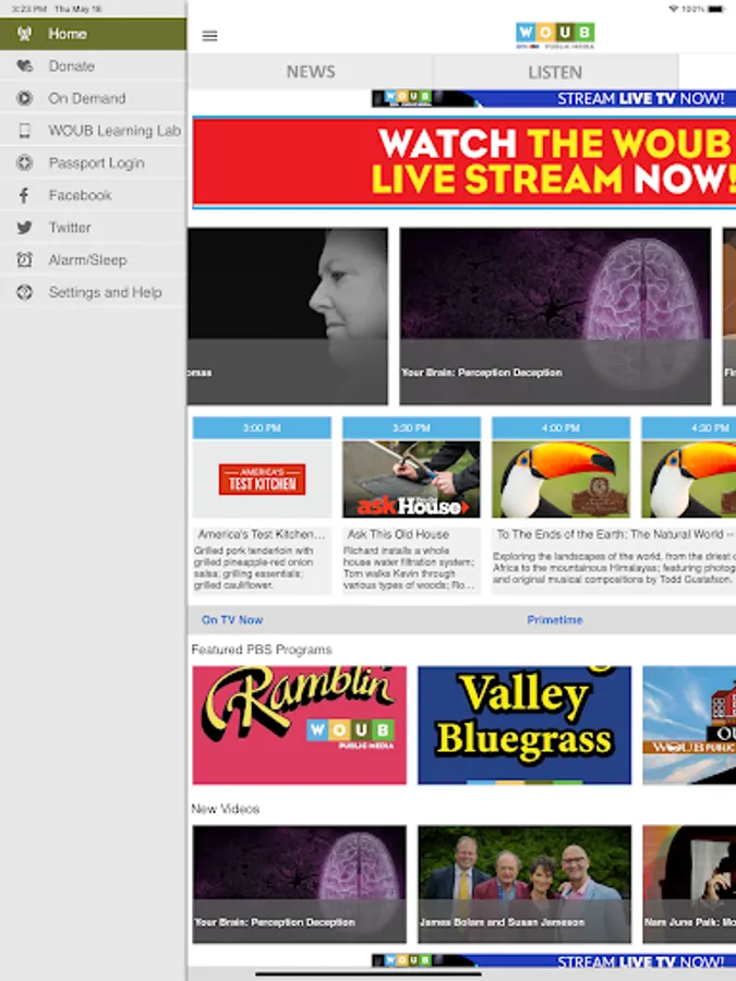 The WOUB Public Media App allows you to watch and listen to all of WOUB’s programs, Radio and TV!