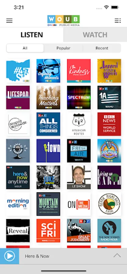 • Listen to live streams from WOUB even while traveling! Start the app and your favorite station starts playing. Watch PBS programs easily from your device, no matter where you are.