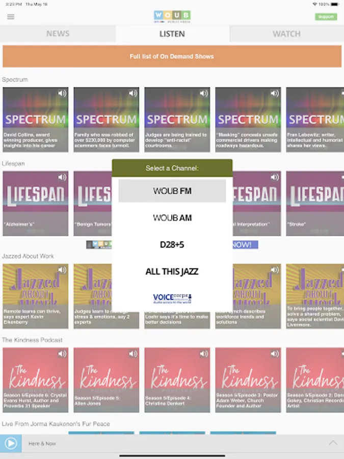 • The WOUB Public Media App displays the web page associated with the program or program segment you are listening to On Demand so you can explore for more information.