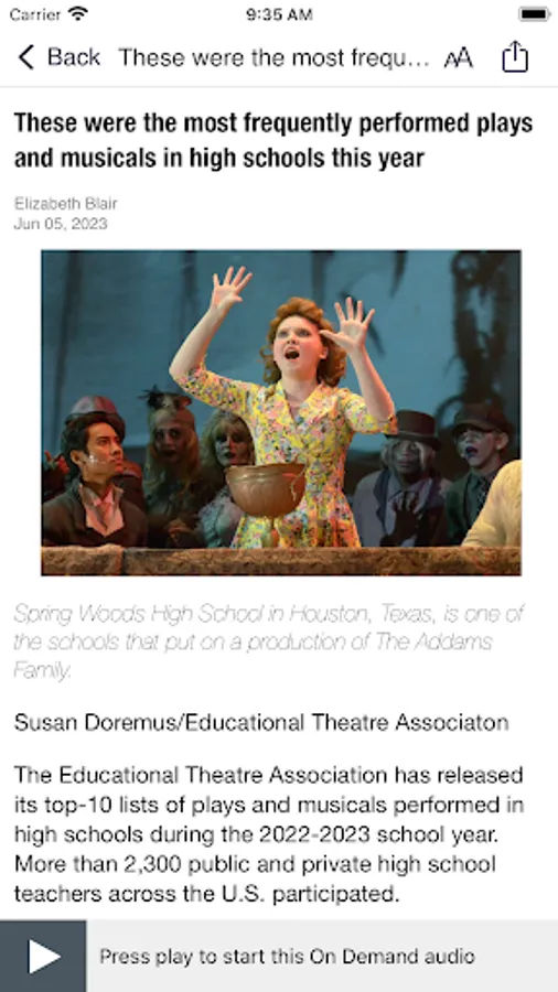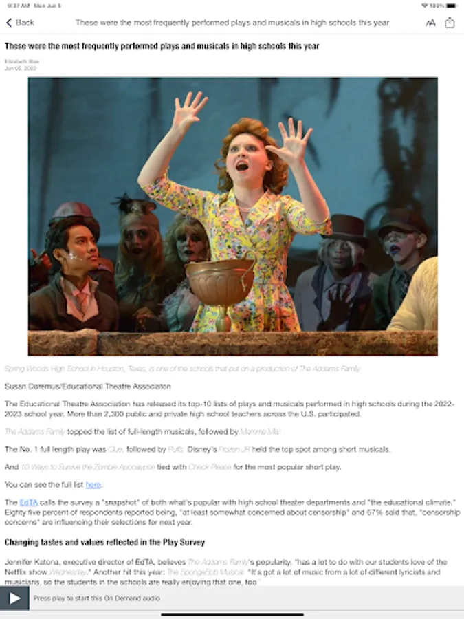 • The WUGA Public Radio App displays the web page associated with the program or program segment you are listening to On Demand so you can explore for more information.