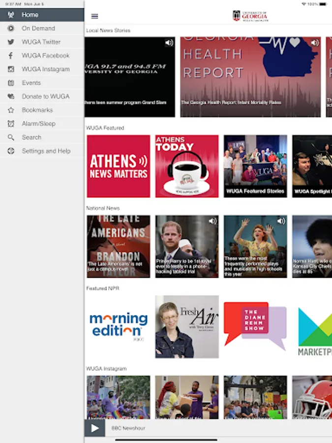 The WUGA Public Radio App allows you to listen to WUGA, pause and rewind the live audio, and view the program schedule for WUGA all at once! You can explore On Demand content, bookmark a program for later, and wake up to WUGA with the alarm clock!