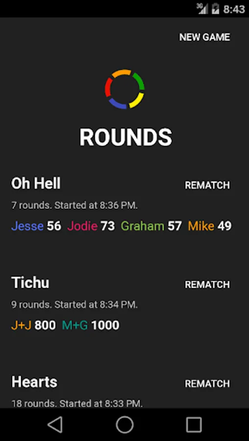 Rounds is the only score pad you'll need for card games like Rummy, Hearts and Oh Hell. It can track points for board games like Scrabble and Carcassonne. And it works for special deck games like Tichu, Mu, Haggis and Lost Cities. Golfers will like Rounds' ability to score mini golf, disc golf and of course... golf.