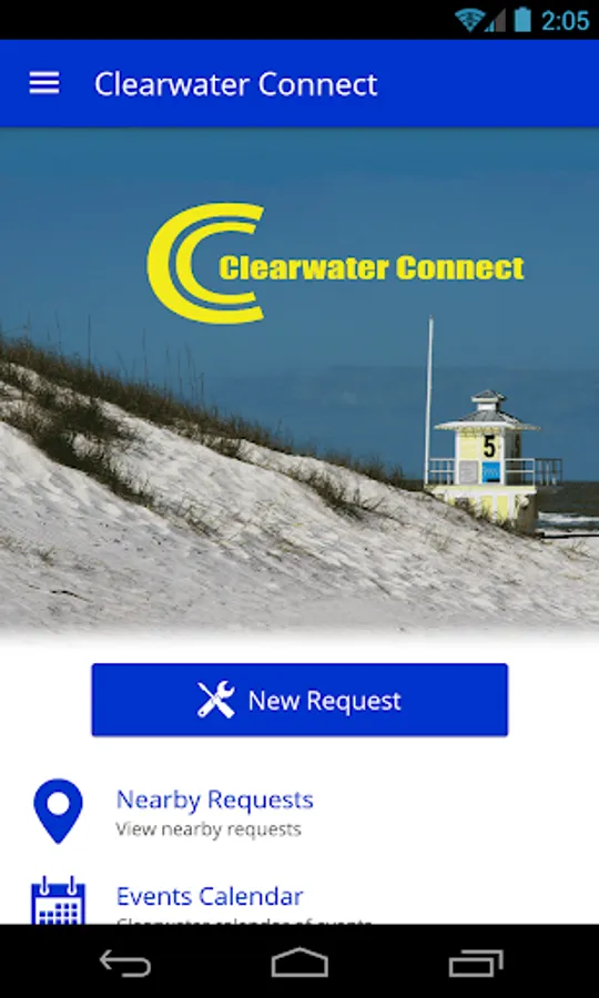 The Clearwater Connect app is your official civic engagement tool to stay in touch with the City of Clearwater. The app allows a service request (potholes, noise complaints, dangerous conditions, code compliance, public utilities, and general questions) to be submitted directly to city staff, where it will be instantly routed to the correct administrator in the appropriate department. This means your service requests and inquiries will be responded to quickly and efficiently, and you'll be notified the instant they are resolved!