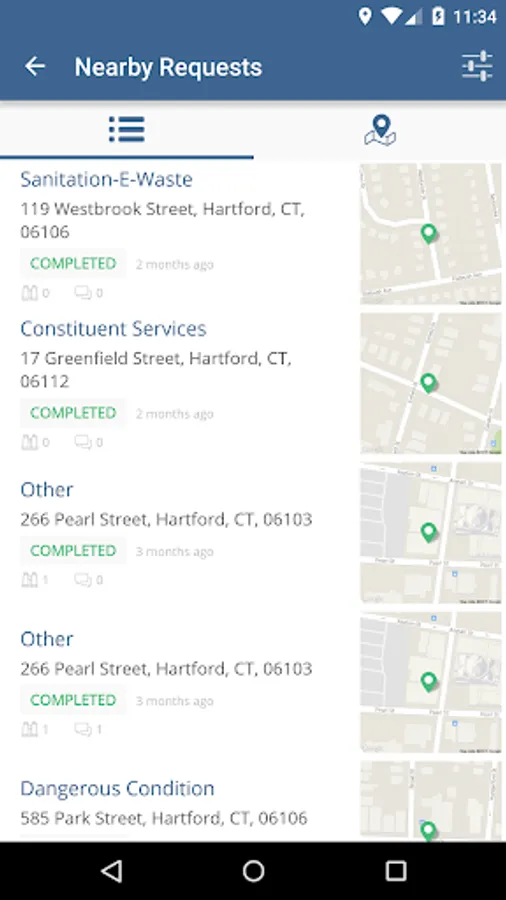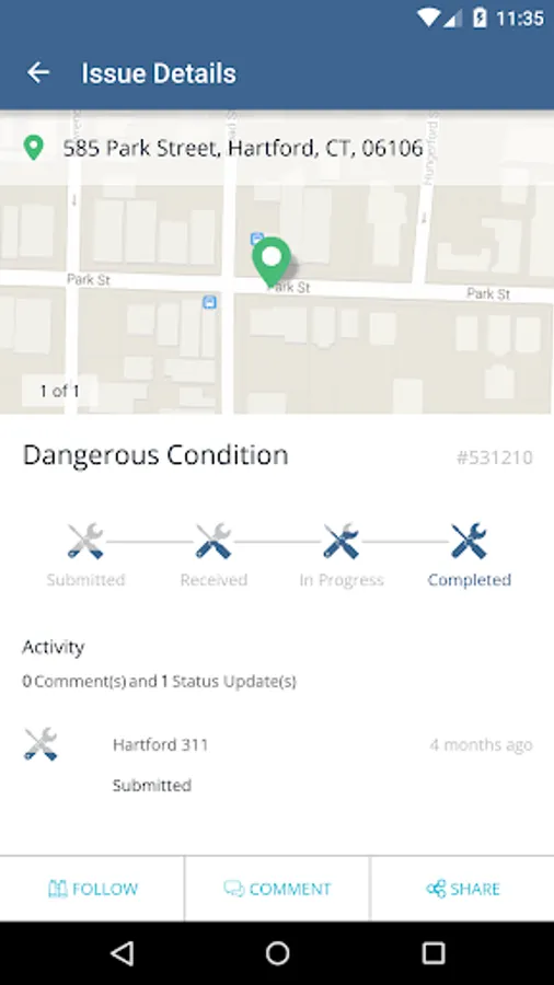 Hartford 311 enables service requests (pothole, noise complaints, dangerous conditions, etc.) to be submitted directly to your local government, where it will be instantly routed to the correct administrator in the appropriate department. This means your service requests will be responded to quickly and efficiently, and you'll be notified the instant they are resolved.
