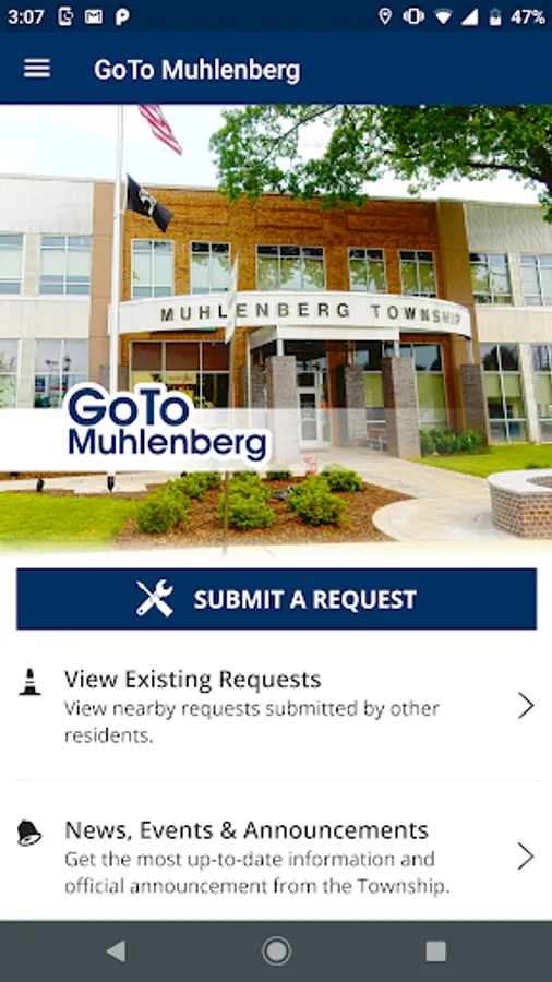GoTo Muhlenberg is the official app that helps you stay in touch and interact with the Township of Muhlenberg. This app allows residents to submit requests for service, report issues, ask questions or send concerns directly to the township. All requests are immediately received and routed to the appropriate department for review and action. GoTo Muhlenberg allows the township to respond quickly and efficiently while at the same time allowing your request/concern to be tracked by you. You will receive a tracking ID and be automatically notified when your issue has been updated or addressed. You can provide comments, upload photographs of your request/concern and even follow other requests from other residents so you can be informed of their progress as well. GoTo Muhlenberg also provides you with the latest township news and public announcements, event information and more. Download the app today and get connected with Muhlenberg Township!