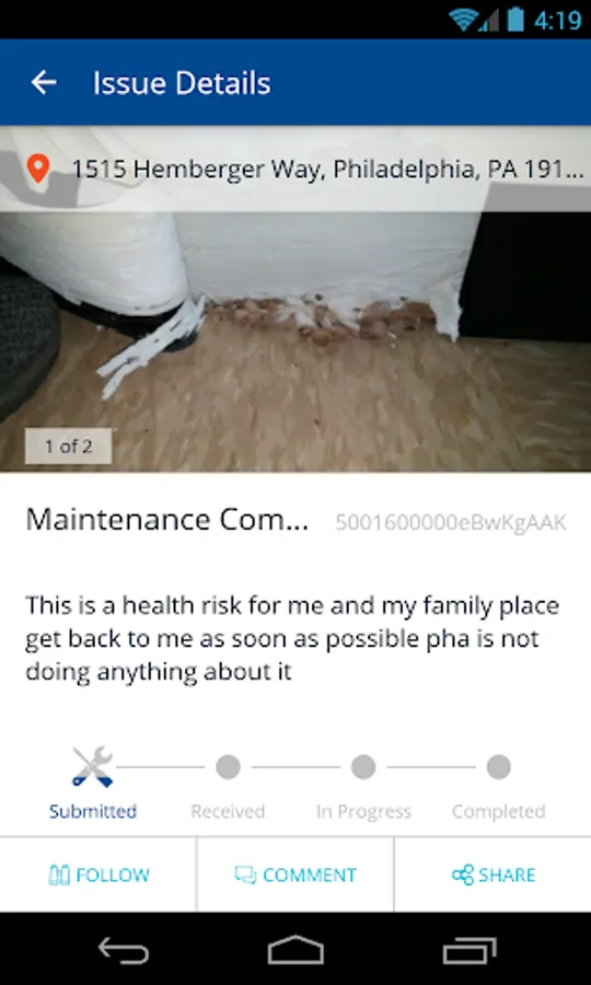 Philly 311 allows service requests (potholes, noise complaints, dangerous conditions, etc) to be submitted directly to the your local government, where it will be instantly routed to the correct administrator in the appropriate department. This means your service requests will be responded to quickly and efficiently, and you'll be notified the moment they are resolved!