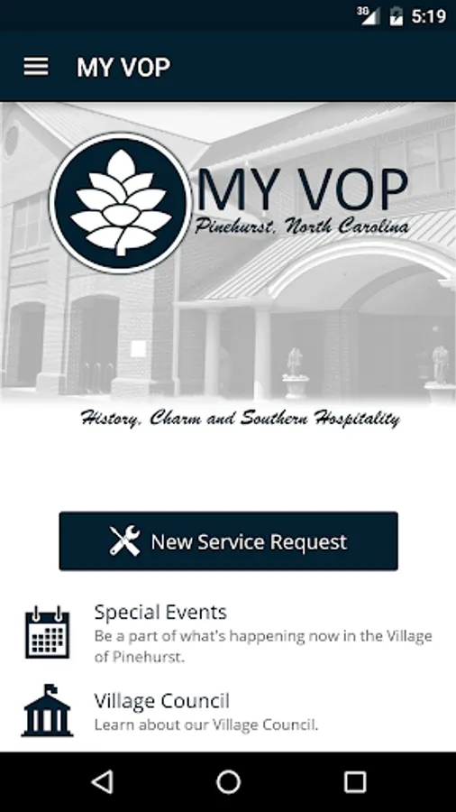 My VOP enables service requests, questions, comments, and concerns to be submitted directly to the Village of Pinehurst, where they will be instantly routed to the appropriate staff member. This means your service requests, comments and concerns will be responded to quickly and efficiently, and you’ll be notified the instant they are resolved! This app also includes information such as special events, contact information and a business directory.