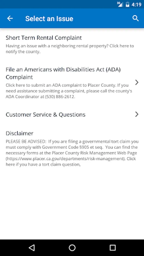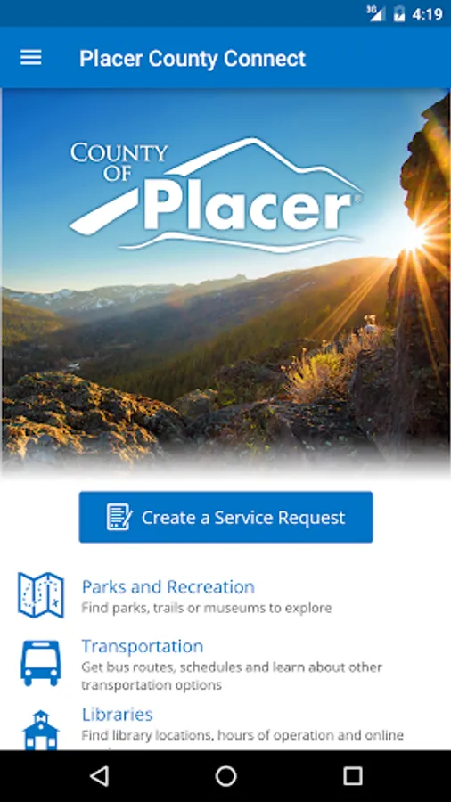 Placer County Connect is the fastest, easiest way to request a county service and access county information. Use it to report issues with Americans with Disabilities Act compliance; find county parks, recreation sites, museums and library locations and hours; find daily burn restriction notices; or share a recommendation with county staff. Placer County Connect instantly routes your message to the appropriate department, provides updates on the progress of your request and lets you follow the responses to other requests in your community, too. Download today and update regularly as we continue to add new features and services to the app.
