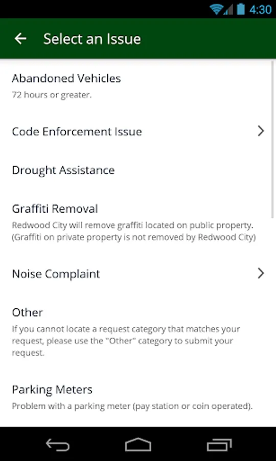 myRWC is a great way to connect with your Redwood City government to report problems in the community and access many different City services. If you see something that needs attention – such as graffiti, abandoned vehicles or potholes – you can submit a service request and even attach a photo. myRWC routes the issue to the right City staff person; you will be notified through your phone when the work is complete. You can also monitor requests and provide comments, pay your water bill, register for a class and check out the latest community news and events. Local government functions at its best when everyone participates. Download the app to get started today!