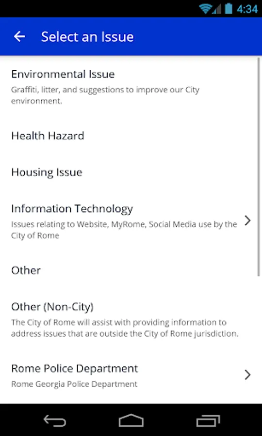 The myRome app allows you to connect directly with city staff in order to more effectively and efficiently resolve issues in the community.