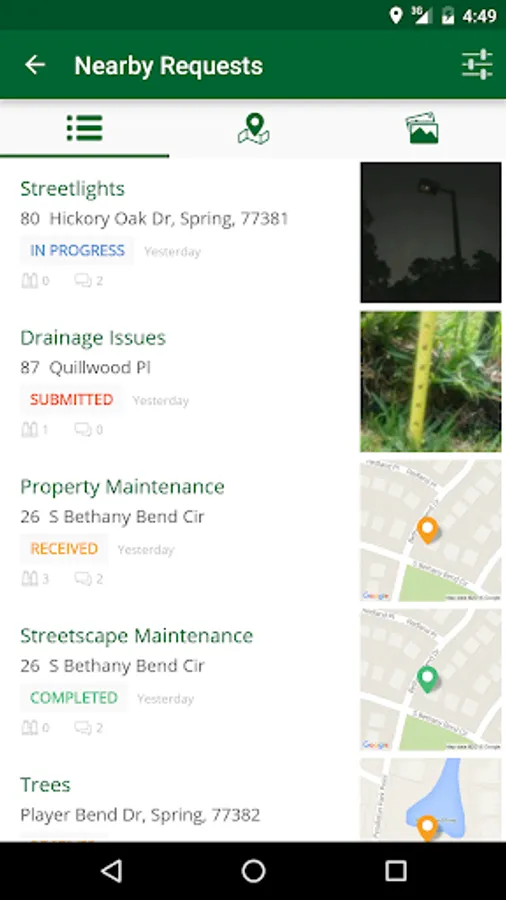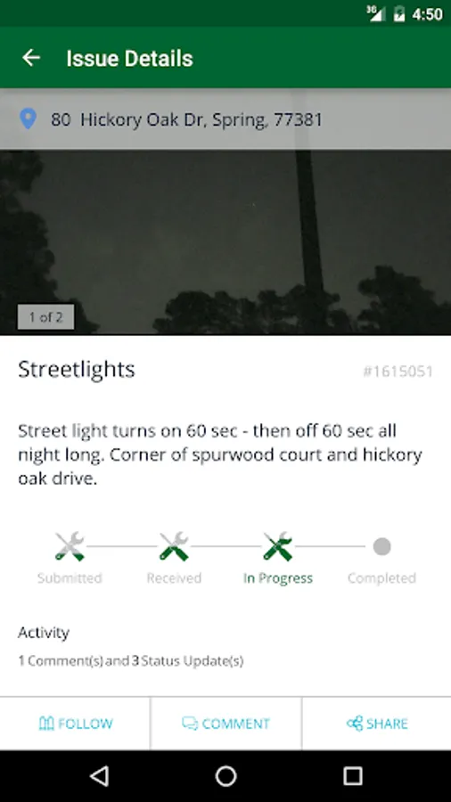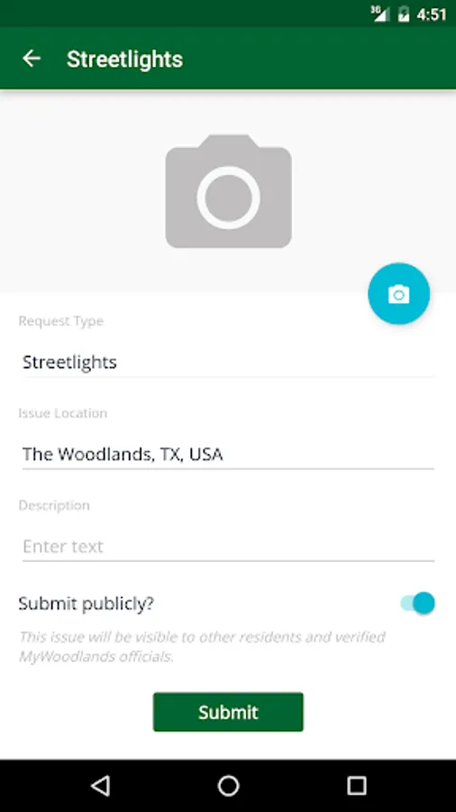 TheWoodlands311 is a free, easy-to-use platform for community members to stay in touch with The Woodlands Township. Service requests, such as reporting broken streetlights, are easily submitted by completing a short description of the issue. Attach a photo or let your phone record the exact location to help us pinpoint the problem. Requests will be routed to the appropriate department for proper handling. Residents will be able to track the progress of their requests on the Township website and through the mobile application. The Woodlands Township looks forward to serving you!