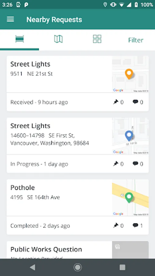 MyVancouver puts many useful City services right at your fingertips. Use it to report potholes, graffiti, broken street lights, broken traffic signals and missing or damaged street signs directly to the responsible department. After submitting a service request, use MyVancouver to check the status of your request and receive notifications when your request has been resolved.