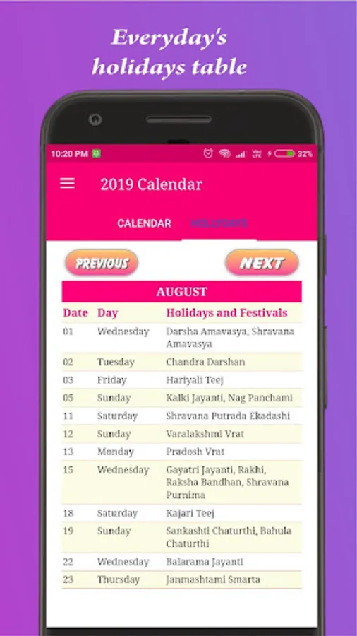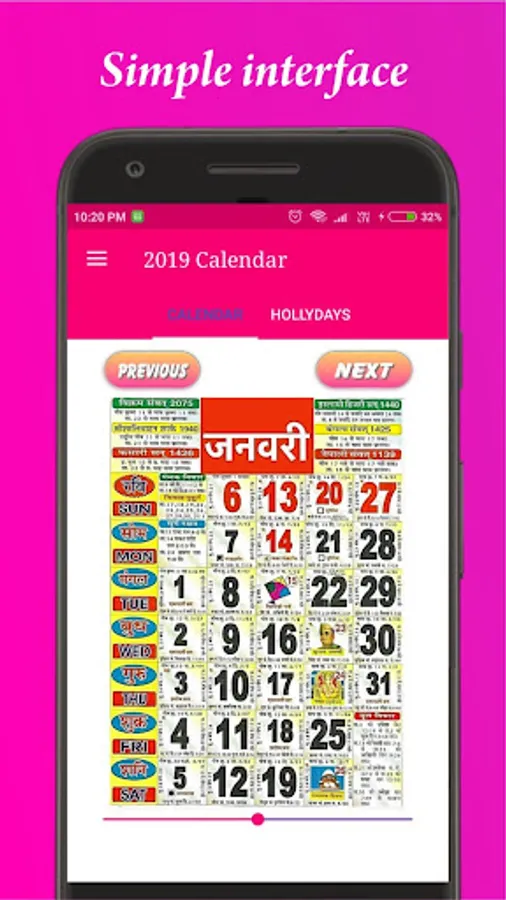 * Fully Hindi and English detailed calendar