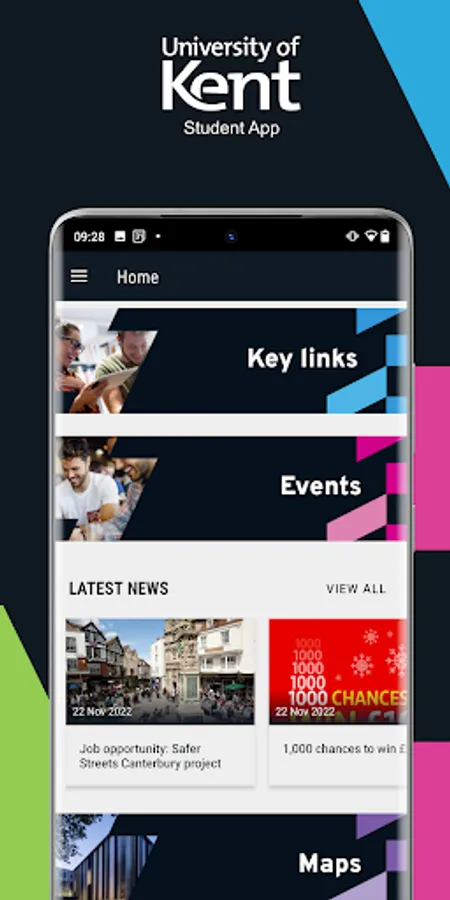 The ‘Uni Kent Student App' gives current students quick access to everything they need while studying at Kent.