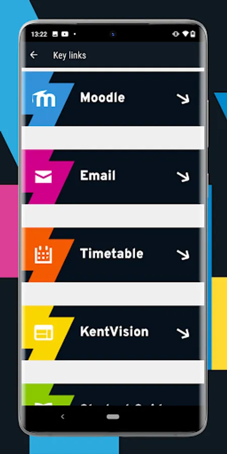 In the app you will find links to key systems including Moodle, your timetable, and emails.