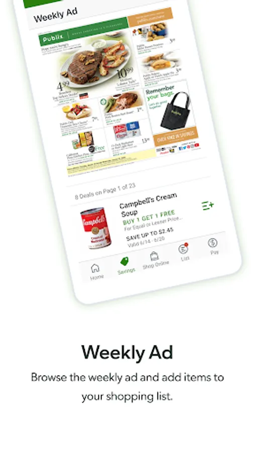 Never miss a deal or a meal with the Publix app. We’ve designed our app to help you save money and time, whether you’re looking for deals on items you actually buy or ordering your favorite ham and cheese sub—we’ll even remember the pickles! To get the most out of our app, join Club Publix and get hand-picked deals, surprise savings, sneak peeks, and other benefits just for being a member. Plus:
