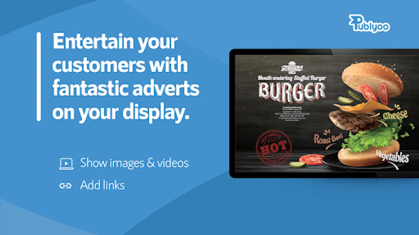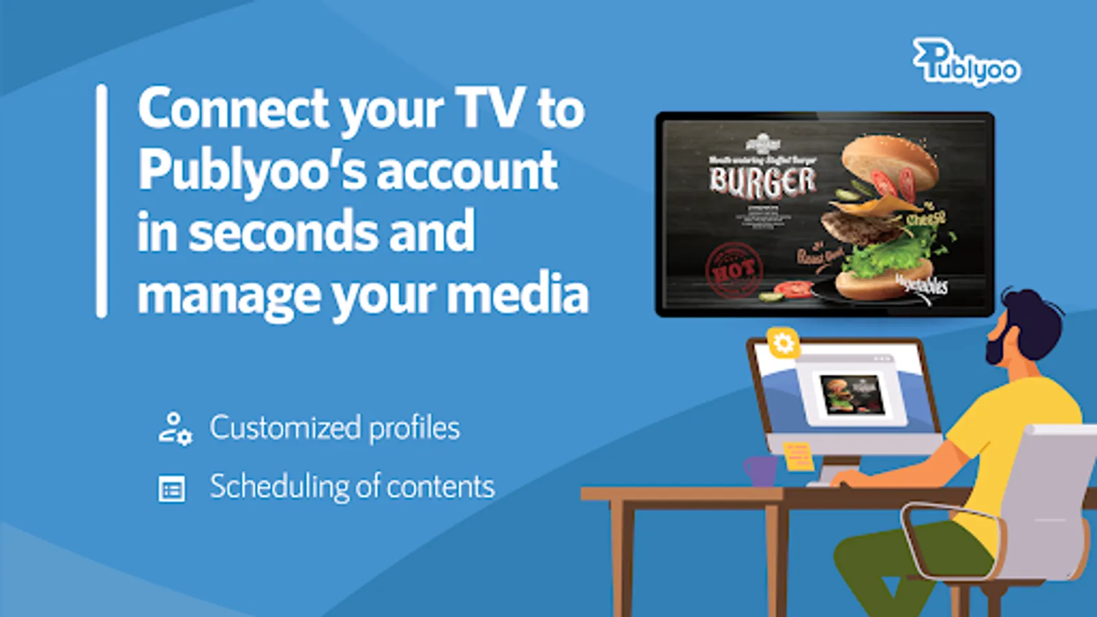 The app lets you connect your TV with your Publyoo backoffice and stream any king of media on your devices. Once the app is installed, you would need to authenticate the TV by adding the device's MAC address on your backoffice. Let's stream!
