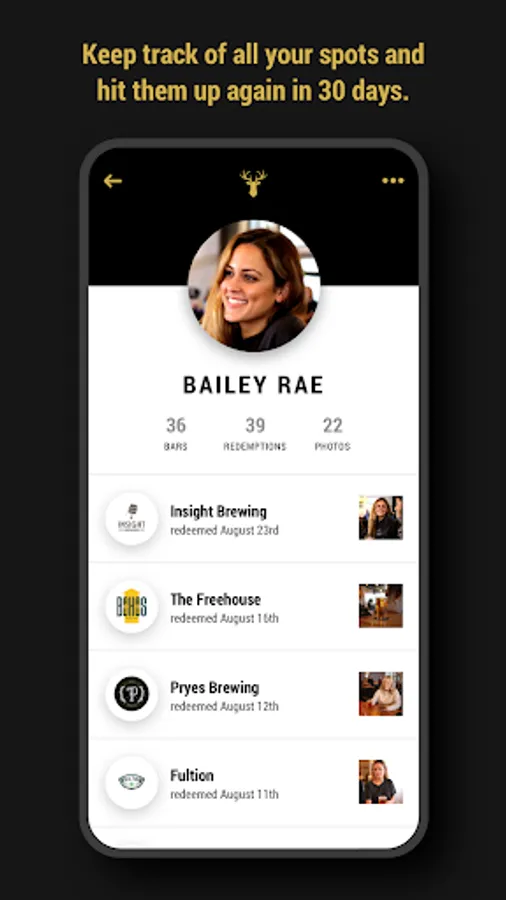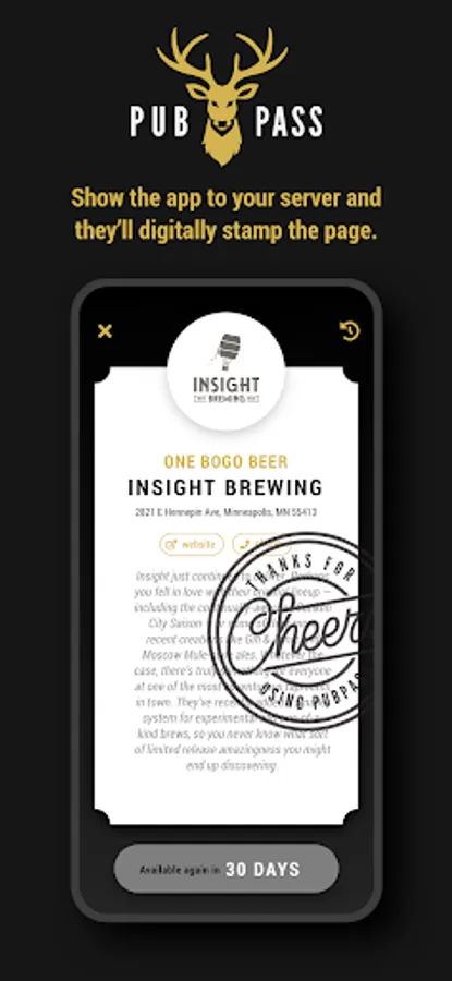 SHOW THE APP: Show the app to your bartender or server and they’ll digitally stamp the page.