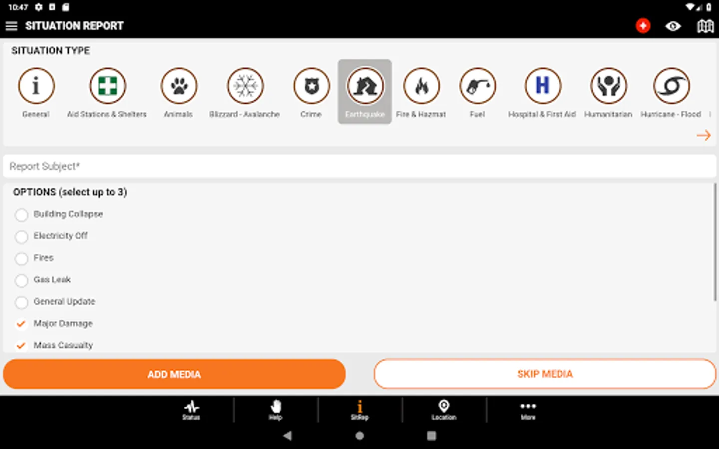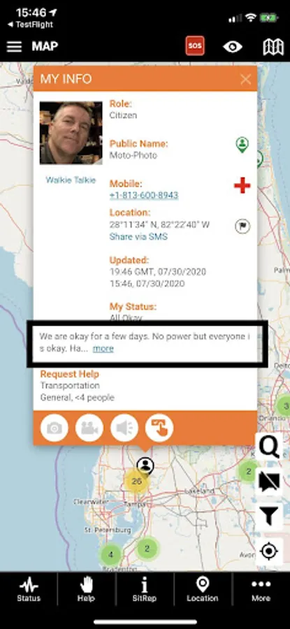 1. Update My Status for family, friends and rescuers. "I'm okay". "Going to rally point". "Home destroyed".