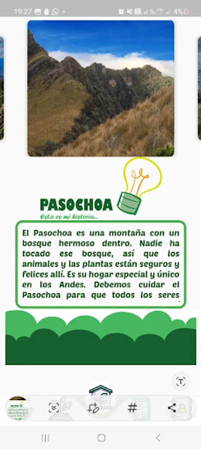 Application that allows to know the Pasochoa in Ecuador. El Pasochoa is a mountain with a beautiful forest, so the animals and plants are safe and happy there.
