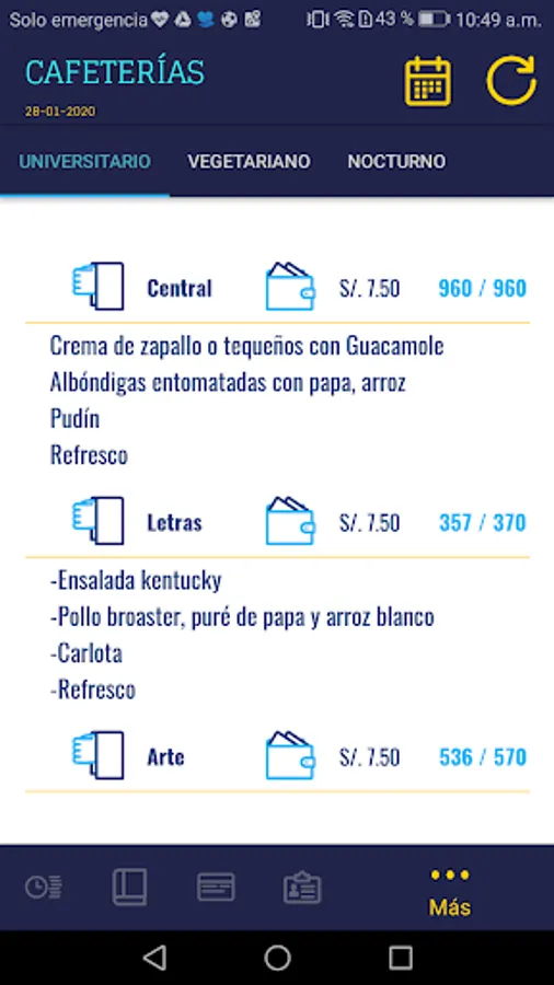- View the amount of available dishes that are to be sold in cafeterias on campus.