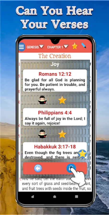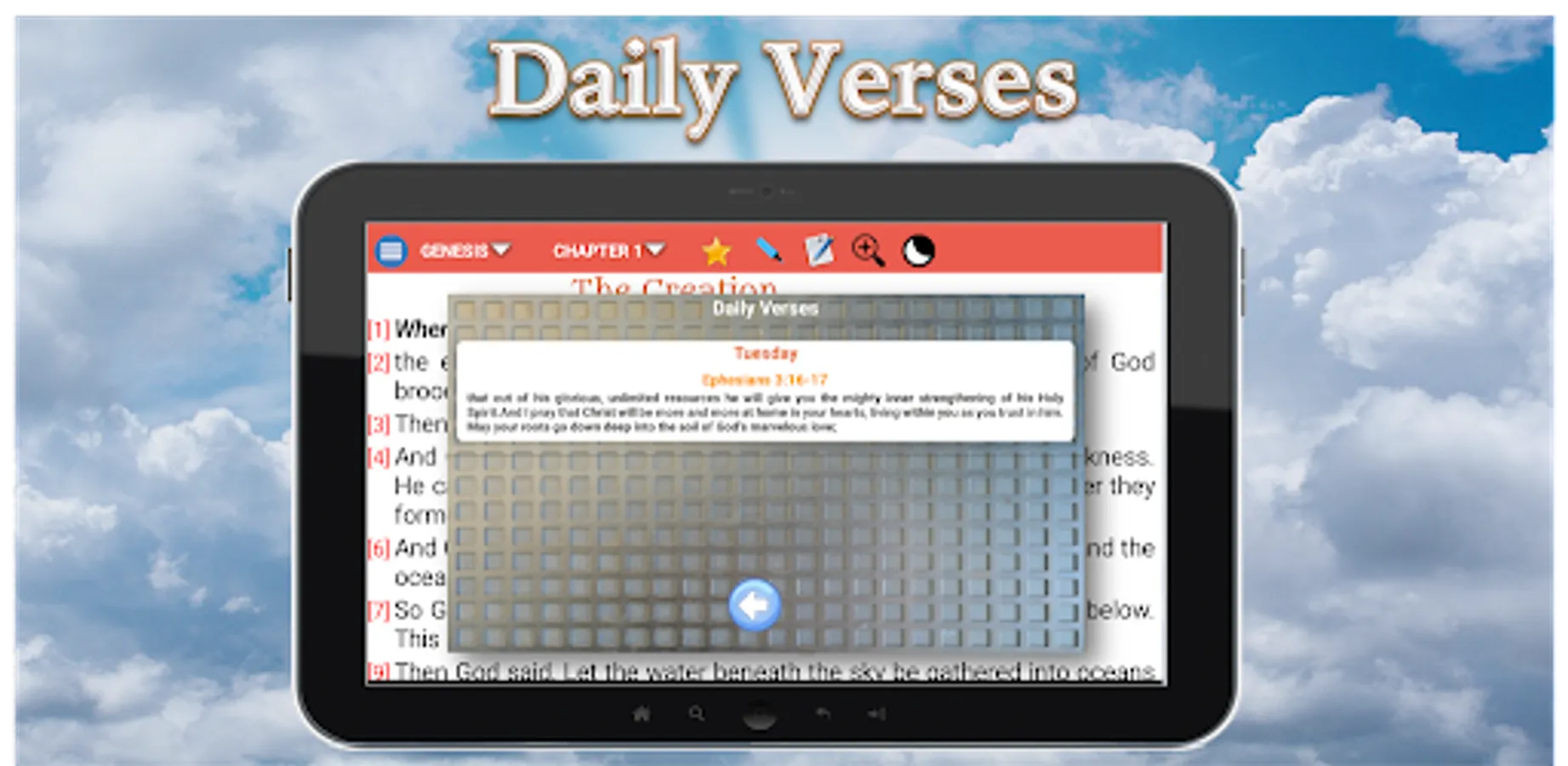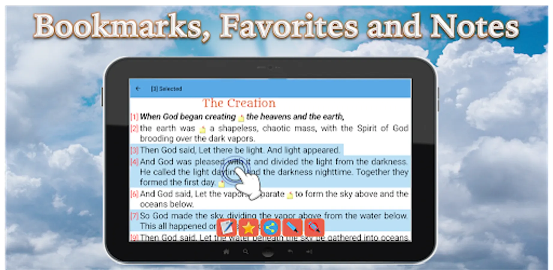 You can select one or several verses of a chapter and mark as a favorite you can also share with your friends the verses in the different social networks. By clicking on the favorite clip, you will see the verses that you marked for quick access.