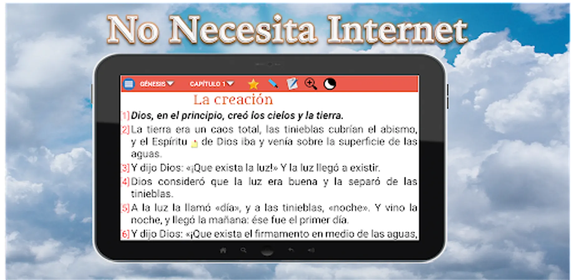 Known as the bible of the Bear. Published in 1569, this Bible marks a milestone in the history of Spanish-speaking people, as it is the first complete version translated into Spanish, from the original Hebrew and Greek languages. It is known as the Bear Bible because of the emblem that appears on its cover, a bear standing next to a bush, trying to reach the honey from a beehive, logo of the Bavarian printer MattiasApiarius. The Bear Bible reflects the literary beauty of the so-called Golden Age of Castilian literature. In Historia de los heterodoxos españoles, the Catholic scholar Marcelino Menéndez Pelayo praised the Bear Bible from a literary point of view, which he considered to be better written than the Catholic versions of Felipe Scío de San Miguel (1793) and Félix Torres Amat (1825) Features of the application The application is easy to use and allows you to listen and read the holy scriptures quickly and comfortably, without the need for an internet connection. You can pause the playback of the chapter and listen to it where you left off again and choose the verse where you want to start reading. Access to the options menu quickly and easily. Option to change the text size.