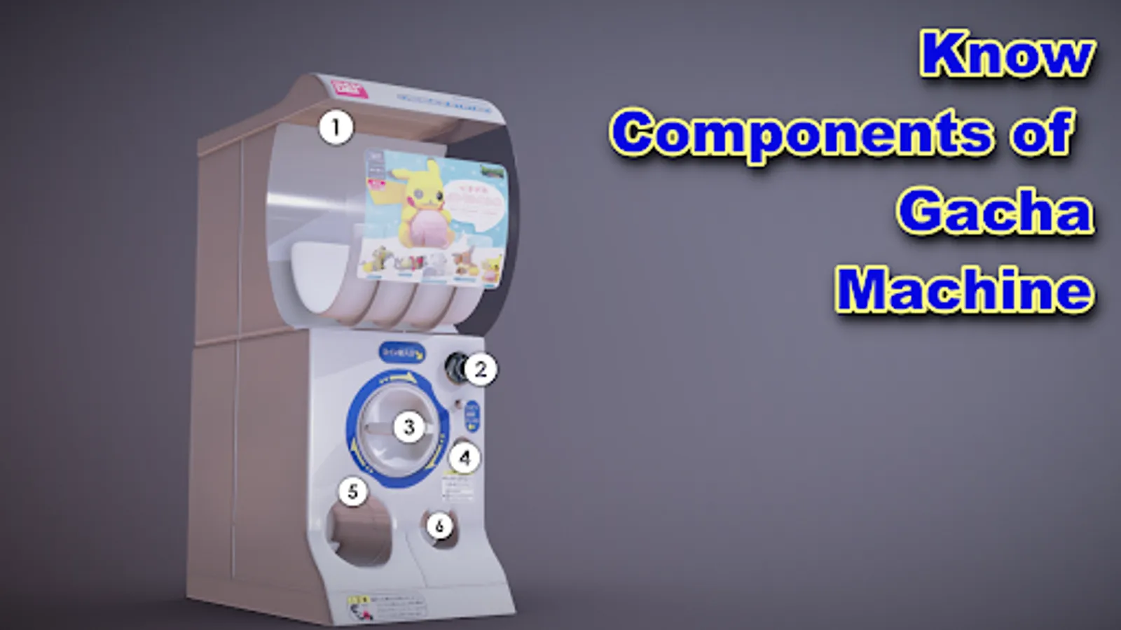 Gacha is a game of luck machine since 1977. This machine contains gift capsules according to the theme of the gacha machine. When the machine ejects the capsule, it will make a "Gacha" sound.