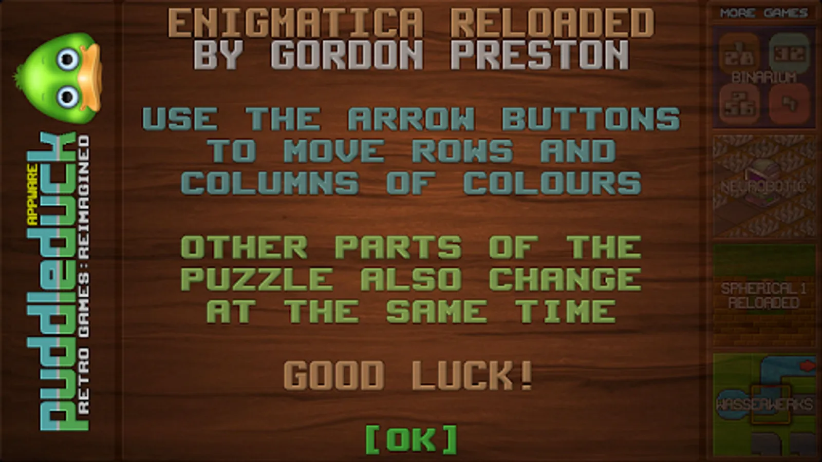 Use the arrow buttons to move either rows up/down, or columns left/right ... but there's a twist ... some other sections of the puzzle also change depending on what you move ... what they are, and how they change, you'll have to work out for yourself, but that just adds to the challenge!