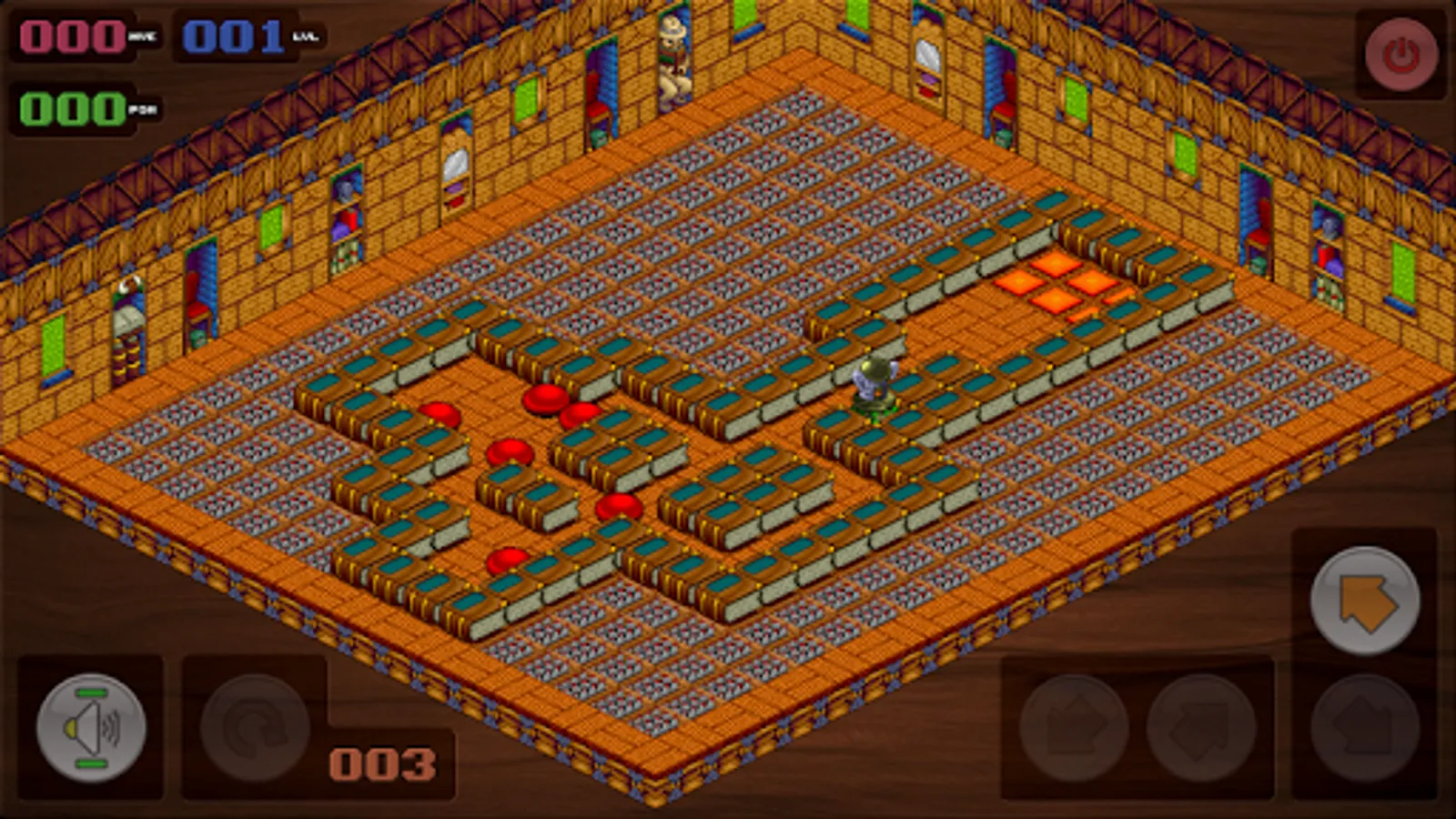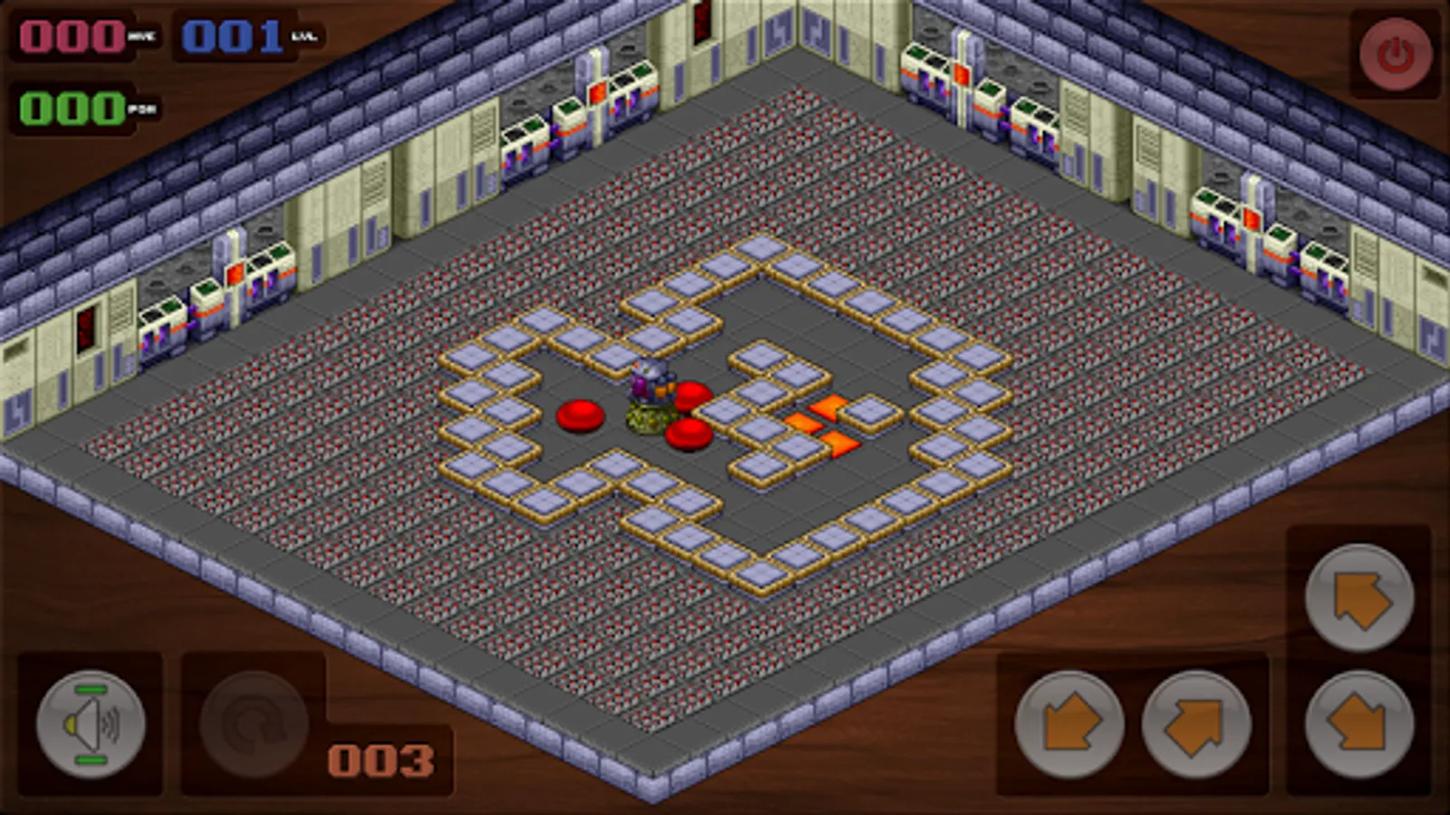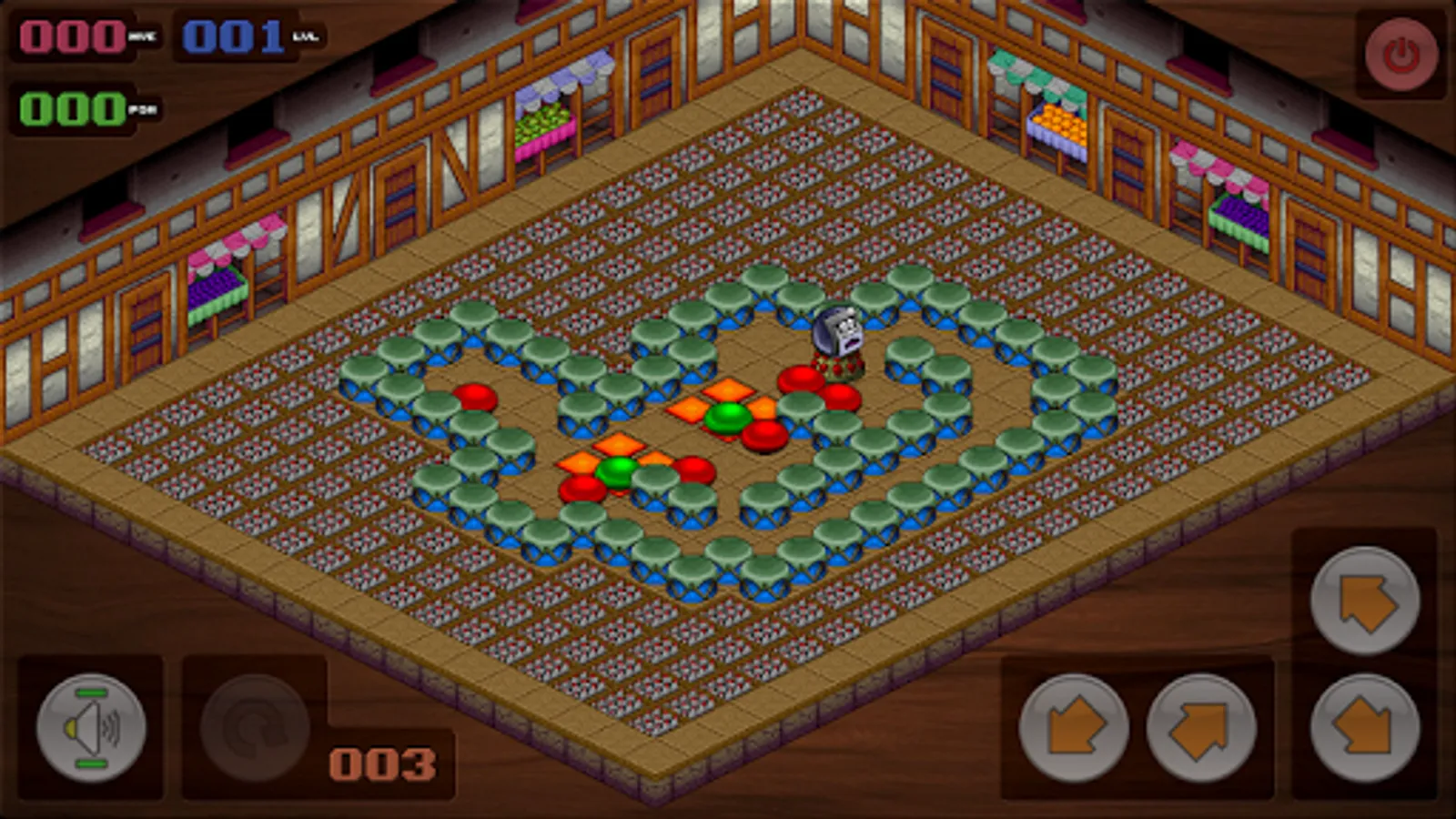 The idea of the game is simple ... push the spheres onto the finishing locations (signified by orange squares on the floor) at which point they will turn green ... the level is complete when all the spheres have been turned green.