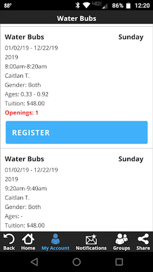 - Have a class in mind? Search by program, level, day, and time. You can register or even put yourself on a wait list.