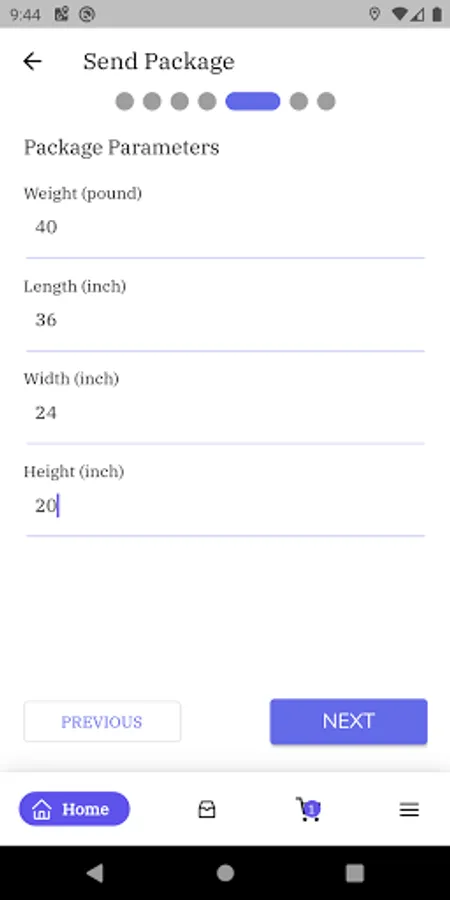 * Simply click send packages, select the service type that fits your pickup and delivery, as far as estimated weight and dimensions.