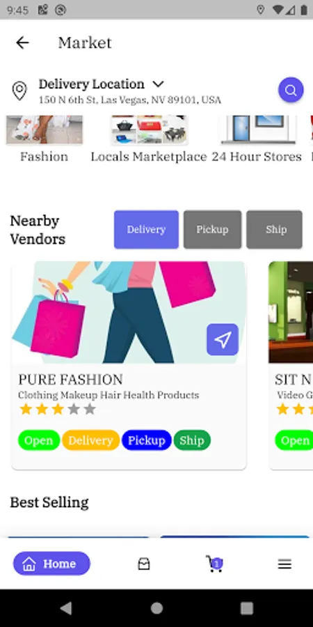* Nearby vendors are local retailers, and individuals buying and selling within a short distance of your location and same day order delivery.