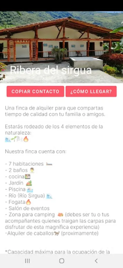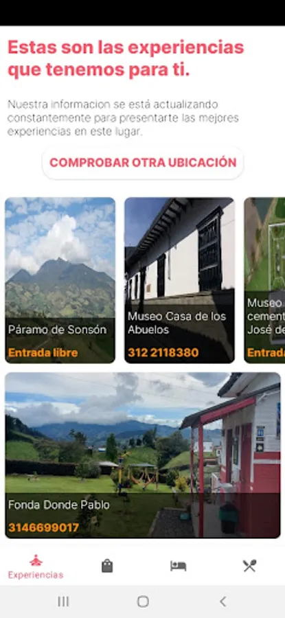 Experiences: Activities that can be done in the place with their respective contact and location.