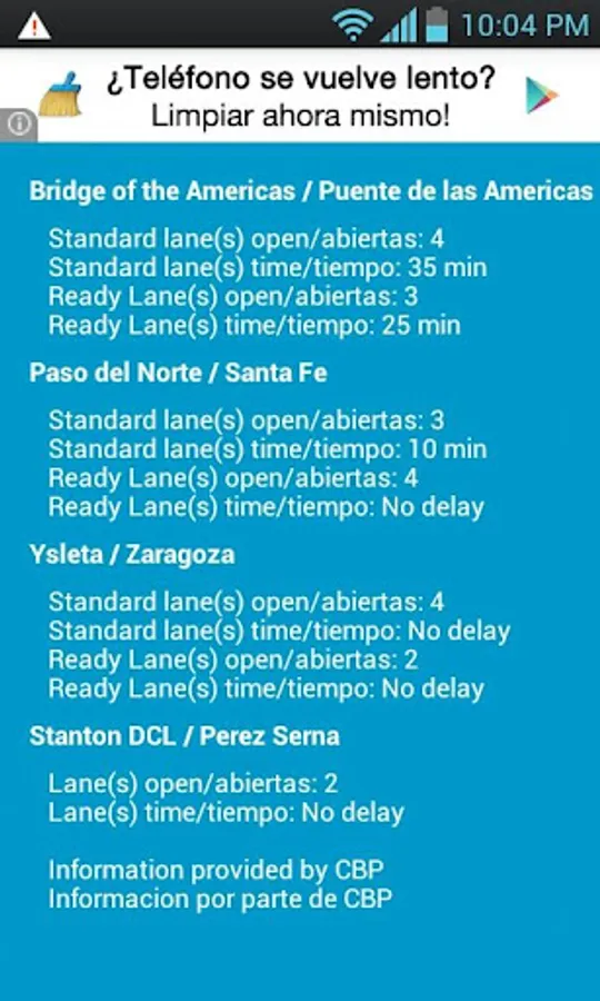 With this simple app is easy to verify border wait times of every international bridge in Juarez - El paso Texas