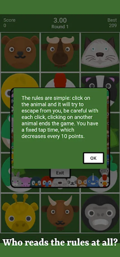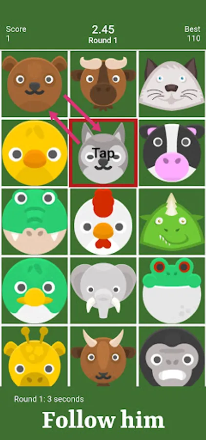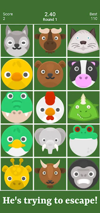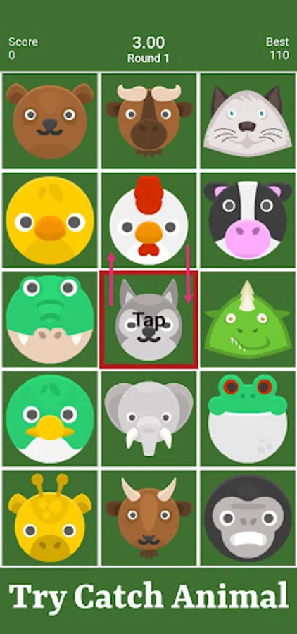 Try to catch an animal! He's always trying to run away from you. Whether it's a wolf, a giraffe, a cat, a dog, a bull, a chicken, a cow, an elephant, a monkey, and even a dragon is on your farm! Don't let them escape! A certain amount of time is given for each animal touch. Click on the animal that was at the beginning and follow its movements.