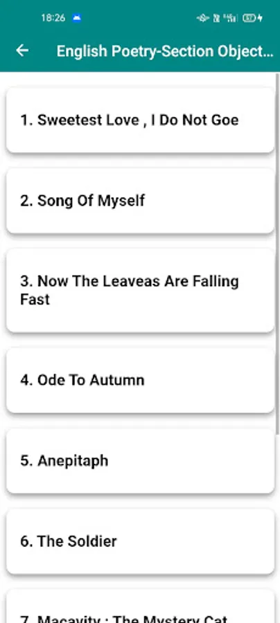 * English Poetry Section Objective