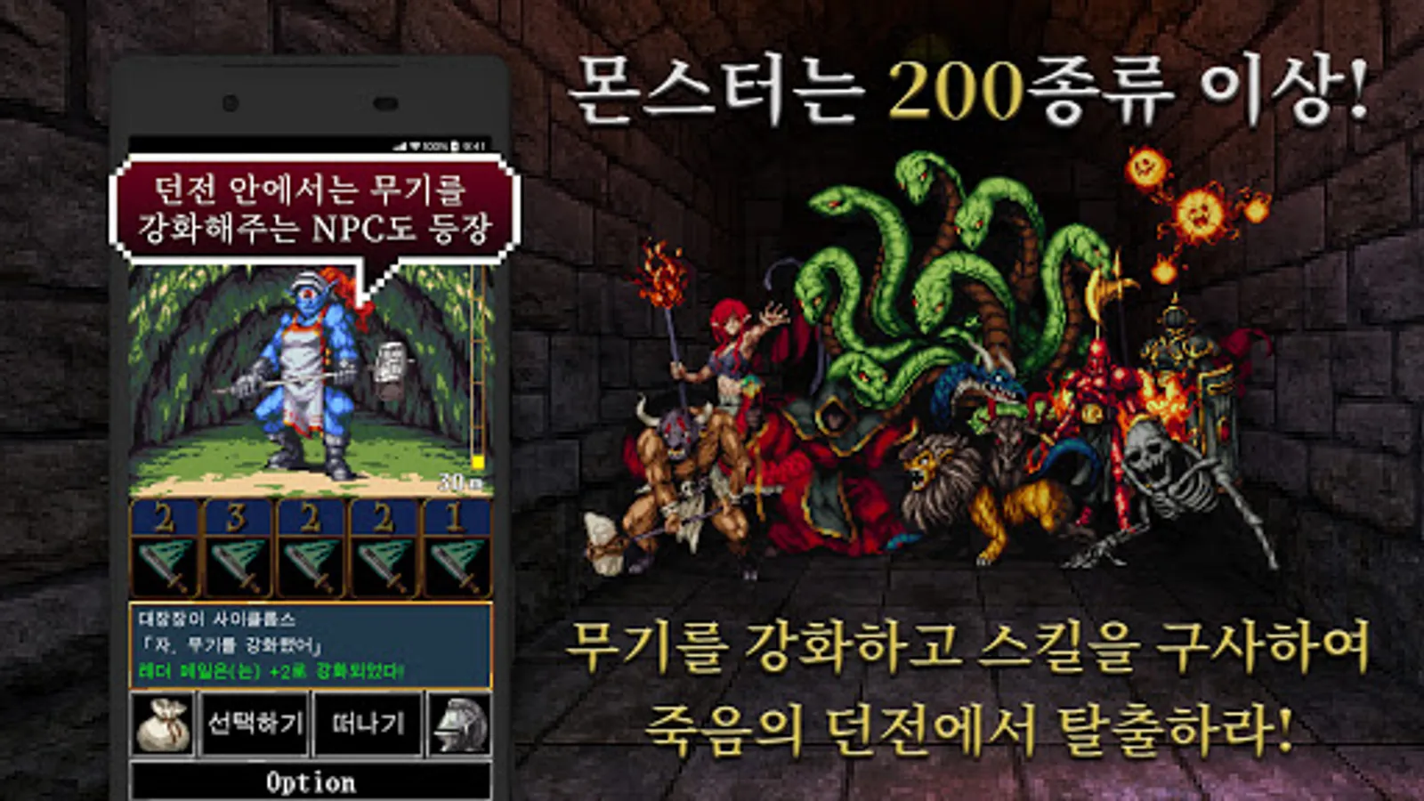 More than 200 types of monsters appear. Each has a unique attack. You cannot win with strength alone. Let's use items and skills to destroy the dungeon of death!