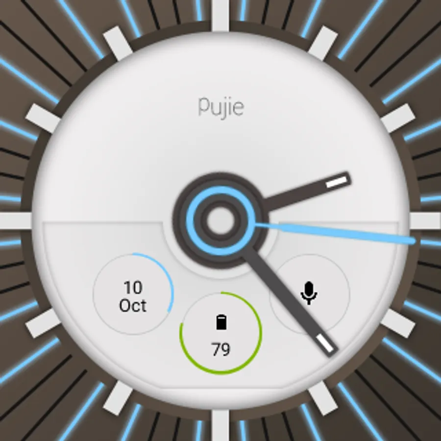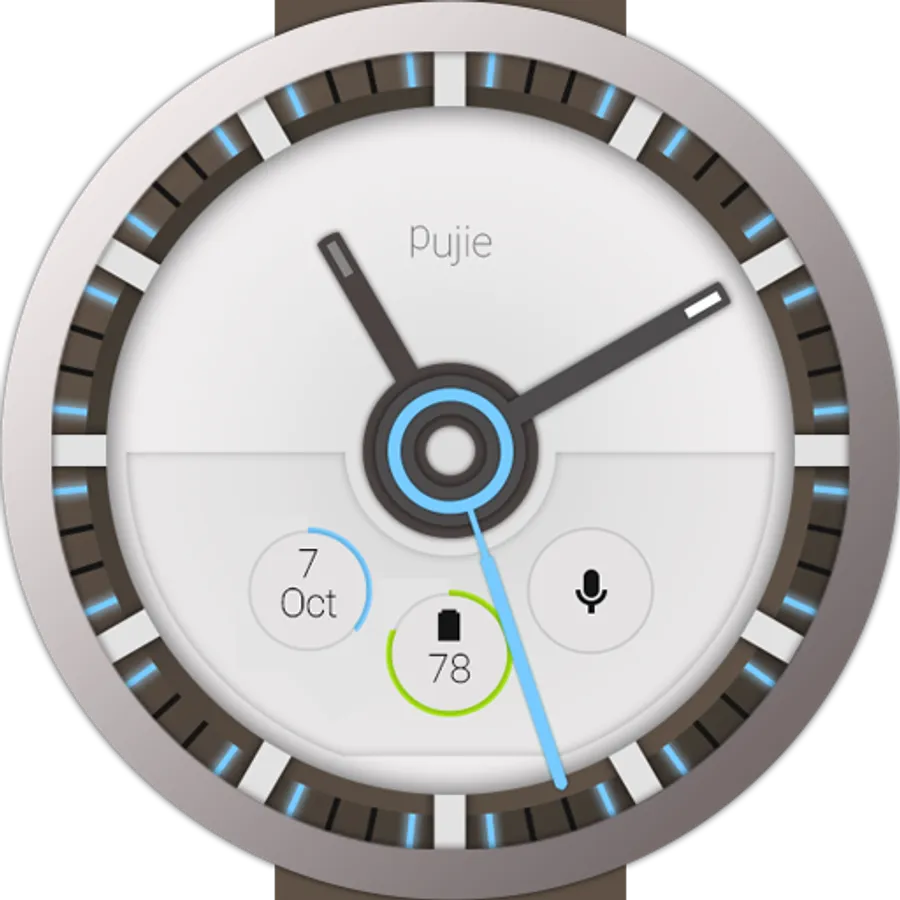Modern blue accented watch face with animated battery and date indicator for Android Wear.
