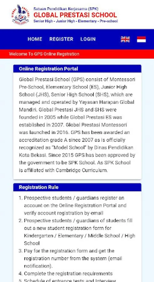 Mobile application for new student admission system of Global Prestasi School, Bekasi.