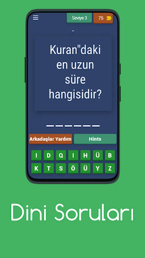 "Religious Questions" is a quiz game on the Turkish language for gamers of all ages. It is arguably one of the best quiz and trivia games. This unique and free game has many game modes including classic quiz mode, online duels, daily missions, quests and leaderboard 🏆. There are also extra level packs that cover many different topics.