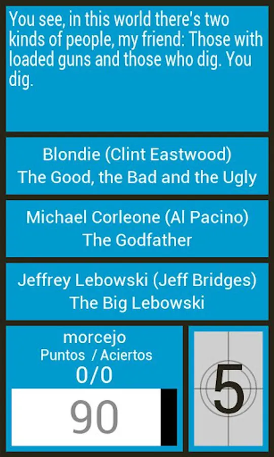 Kizzer Movie Quotes is a free Trivia game with the most famous speeches from movies, with ads.
