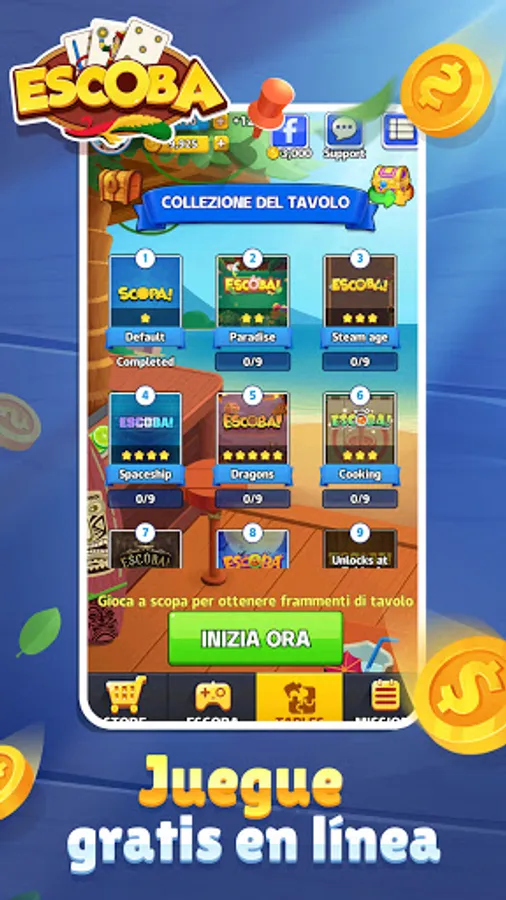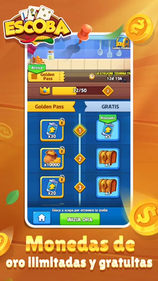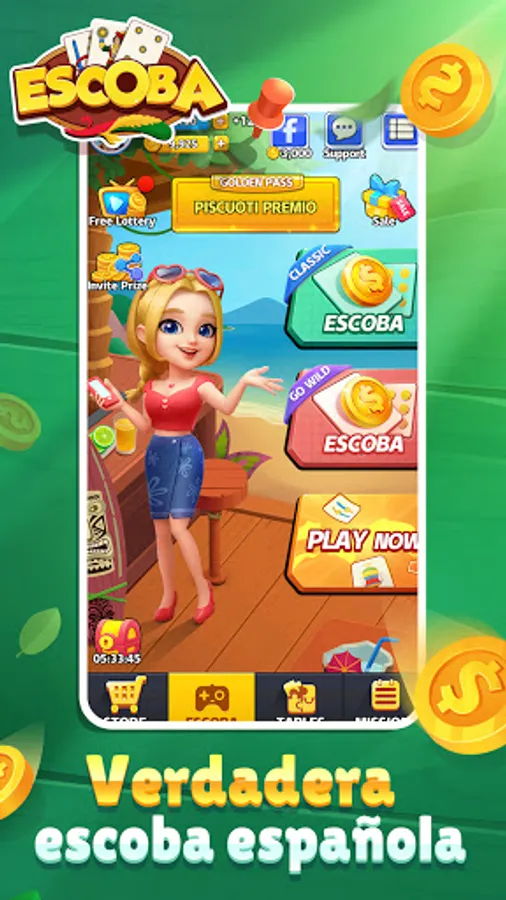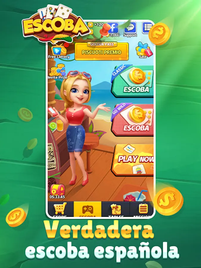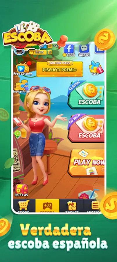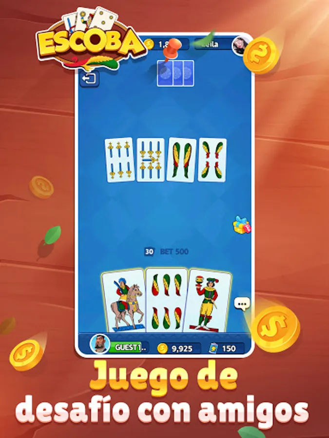 ♦ Benefits and rewards: You can receive free coins every day by entering Escoba, and you can also receive more coins by playing cards.