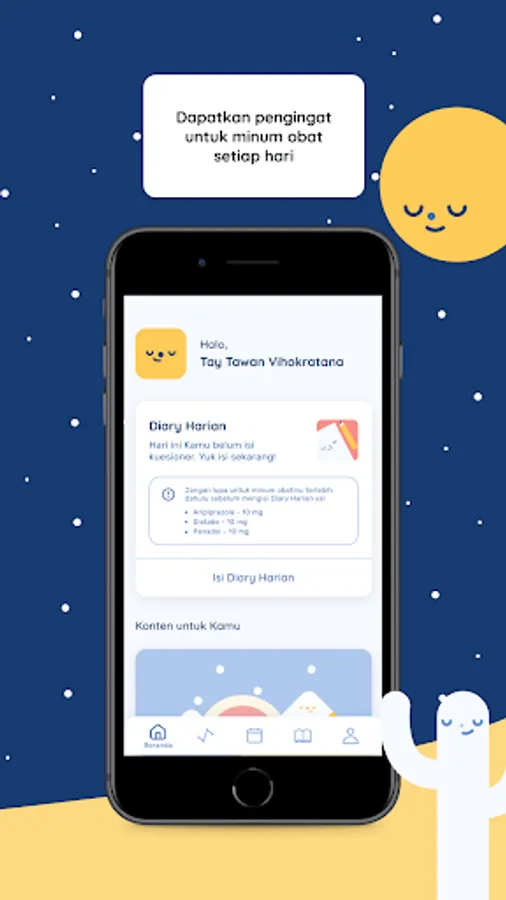 This application aims to assist schizophrenia patients in managing their recurrent symptoms through the following features: 1) medication reminders, 2) daily symptom monitoring diaries, 3) weekly statistics, up to 4) schizophrenia-related educational content. The hope is that Schizophrenia patients can use this application regularly so that it can assist their doctors in monitoring daily symptoms of recurrence.