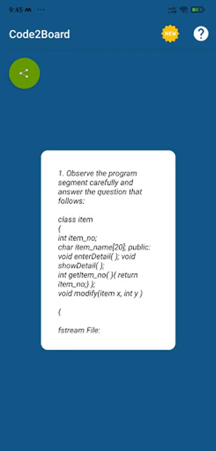 ---> Question cards of 1 mark - Coding question and concepts - Share the Question with your friends or teachers easily.