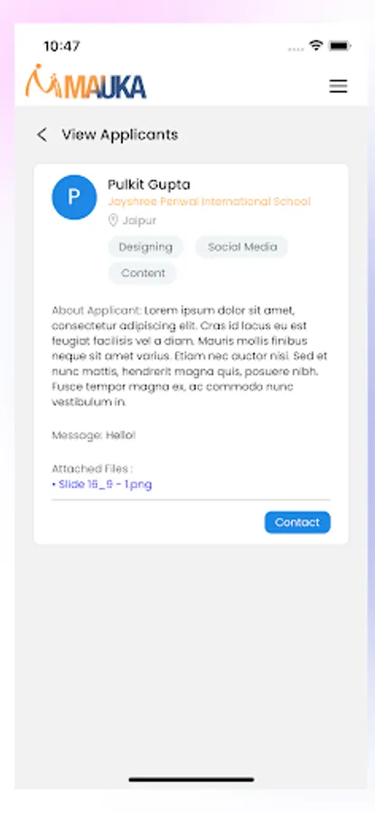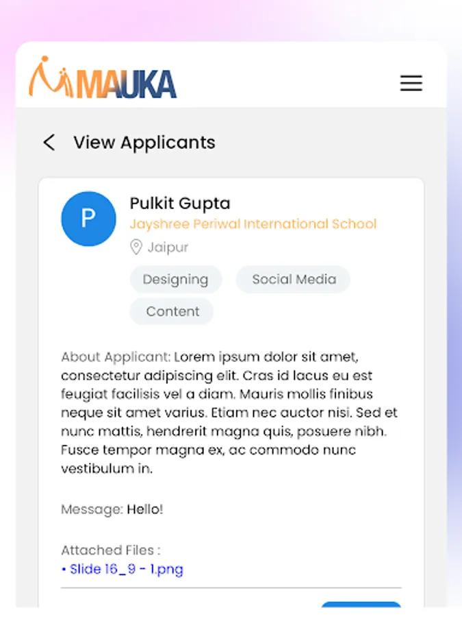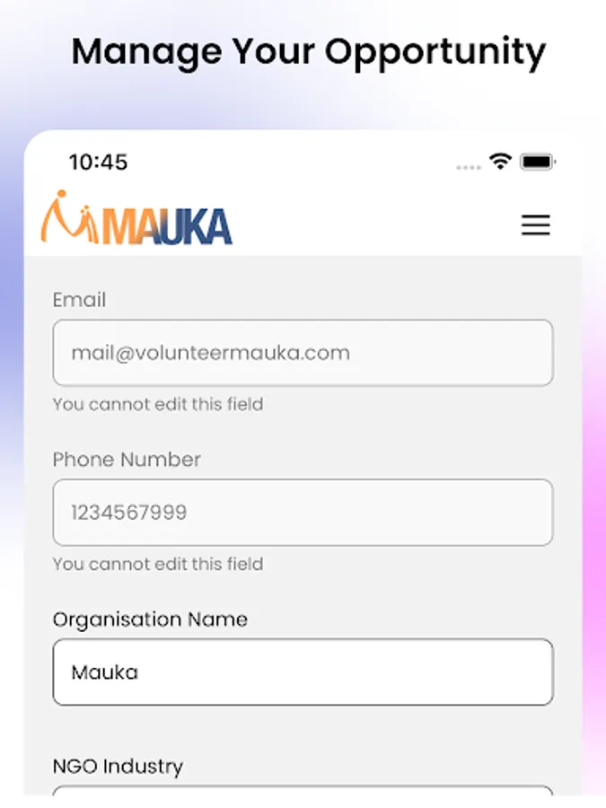 Mauka is a platform which streamlines volunteering for teenagers between the ages of 13-18 like never before. We connect students with government recognised non-profit organisations near them working on a cause they’re passionate about, and provide tangibles students can use for their profiles all verified and organised in one place. Students can create and update their profiles to apply for volunteering opportunities within our large network of NGOs, shelter homes, animal care centres and more. NGOs can sign up to find student volunteers best suited for their requirements and ongoing projects after just creating an account. Use this app to navigate your NGO’s profile and start building your volunteer network.