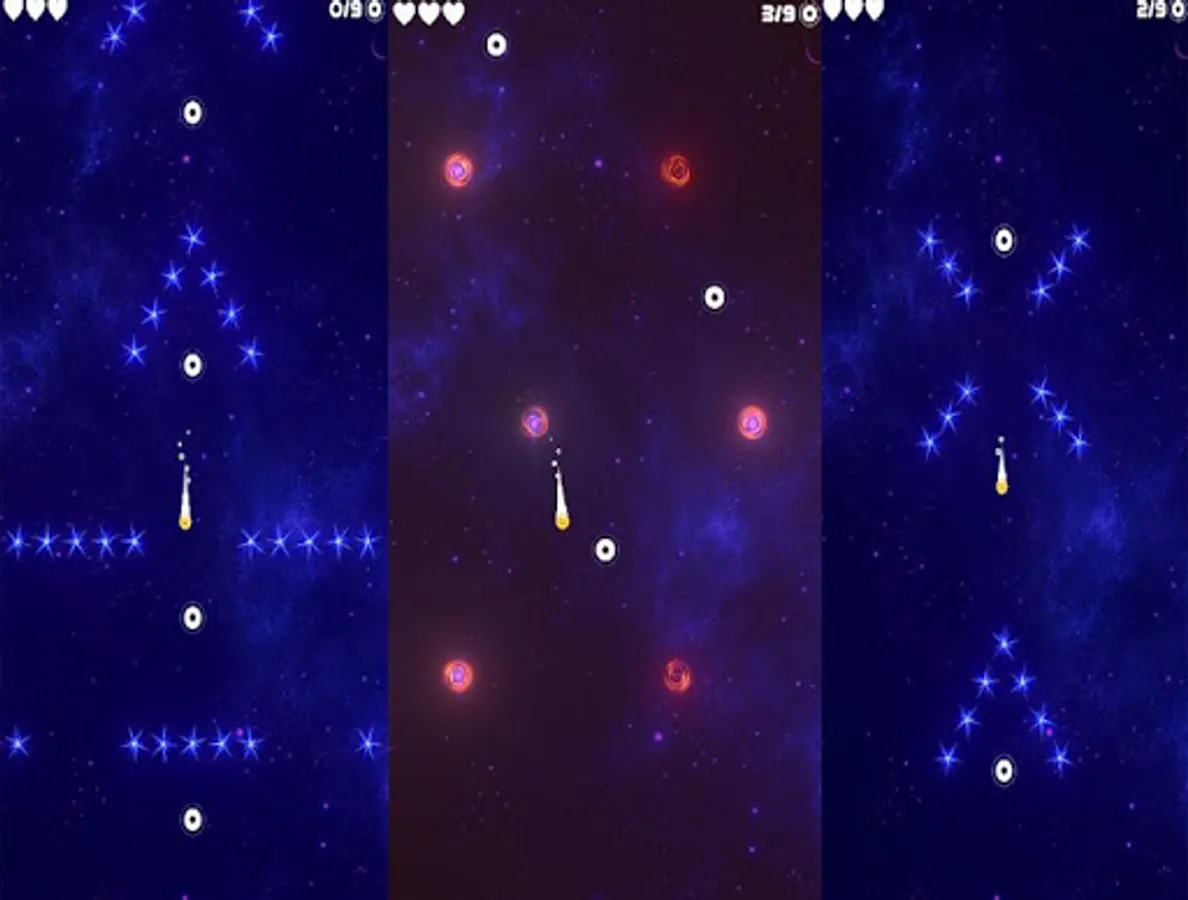 The goal is simple:Collect the white points and avoid everything that is shiny