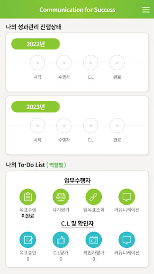 - As a task performer, you can use the same functions as in the PC environment, such as goal setting / team goal inquiry / communication with a superior (C.L) / evaluation.