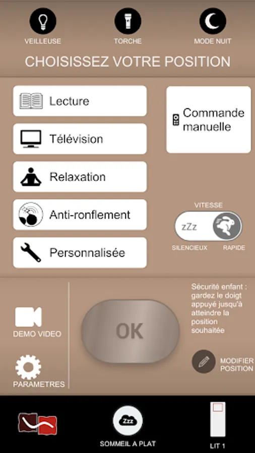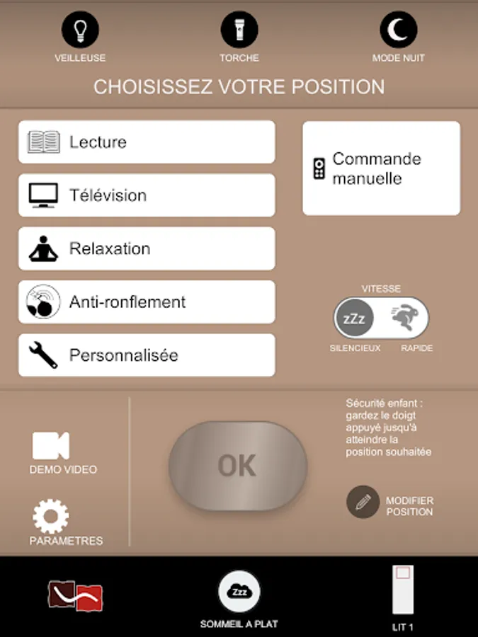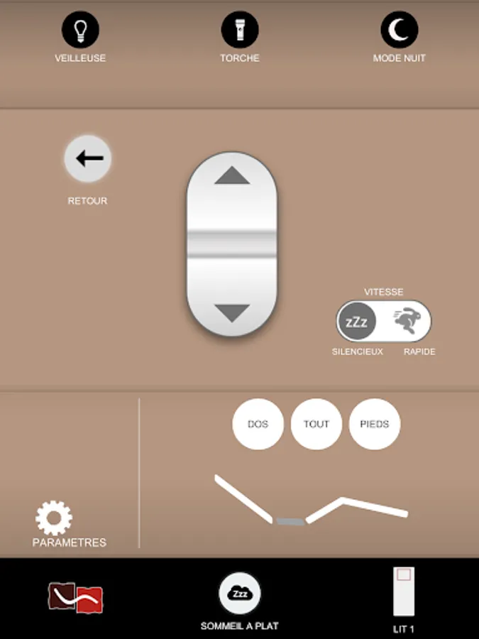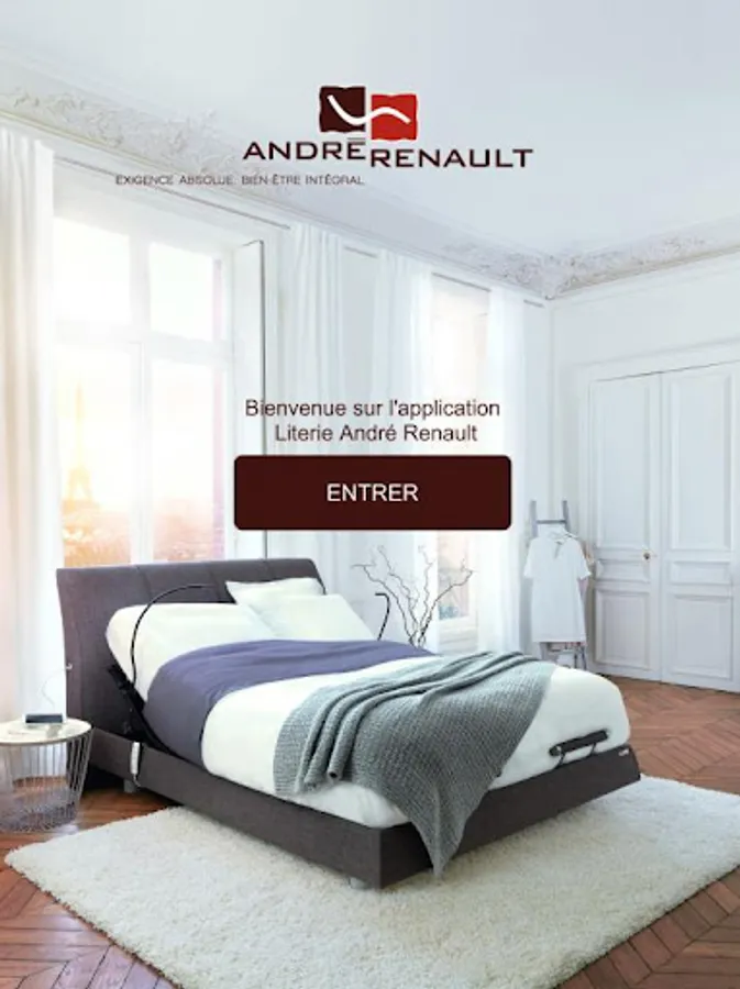 This application lets you control your relaxation André Renault bedding with your smartphone or tablet. You can store your favorite positions (reading, relaxation, TV ...) and control the main lighting functions in order to fully enjoy a unique experience with your relaxation André Renault bedding.