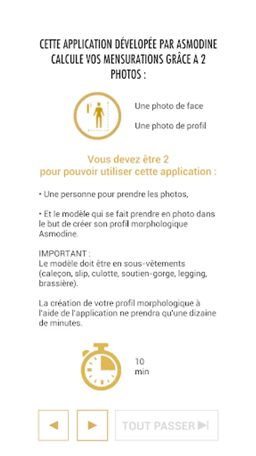 Asmodine-Bodyscan is an application to find out in a few minutes your measurements and your body type.